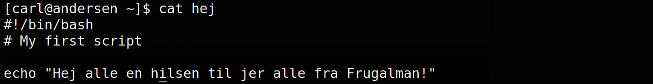 Lad os sige, at vi har en script fil som hedder hej og ser således ud.