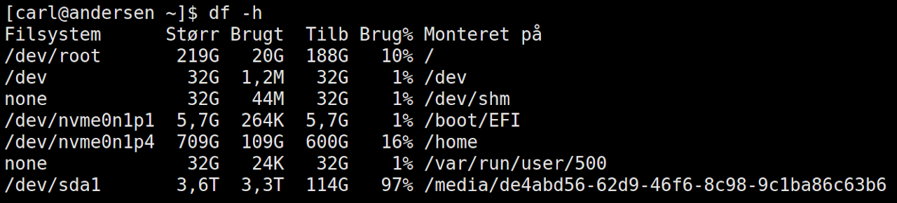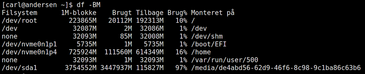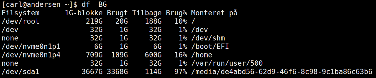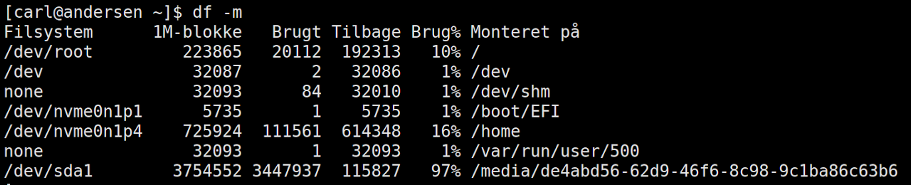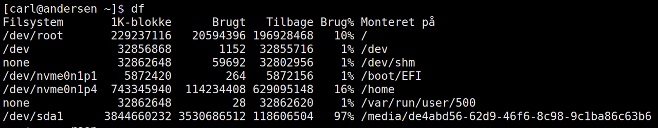 - Oplysninger om df kommandoen