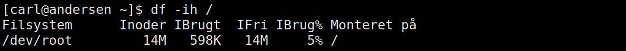 Kommandoen nedenfor viser oplysninger om inoder på filsystemet monteret i systemrootmappen / i menneskeligt læsbart format.