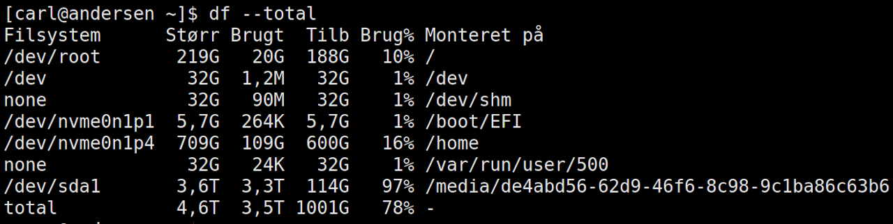 For at få vist dette skal flaget --total tilføjes til df.