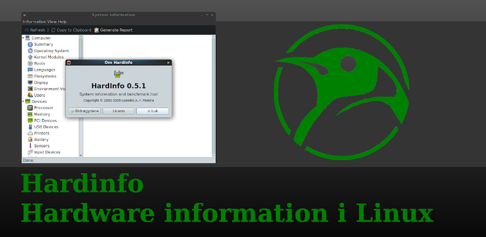Værktøjet kaldes Hardinfo (kort for hardwareoplysninger). Det er en systemprofil og benchmark for Linux-systemer. Det viser hardware information i et pænt GUI-værktøj.