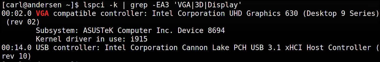 $ lspci -k | grep -EA3 'VGA|3D|Display'