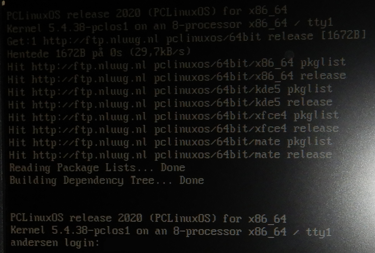 Efter at pakkelisterne er indlæst, så slå enter et par gange,så kommer logind skærmem frem.