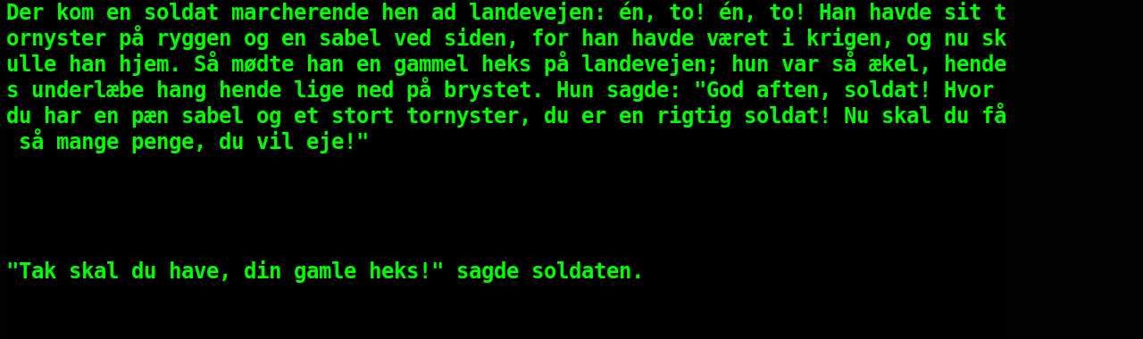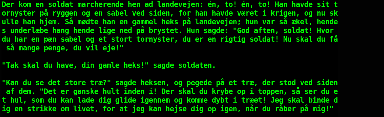 Filen indlæses og vises. Det øverste af filen vises i terminalvinduet. Du kan bruge musens rullehjul til at rulle frem og tilbage gennem teksten.