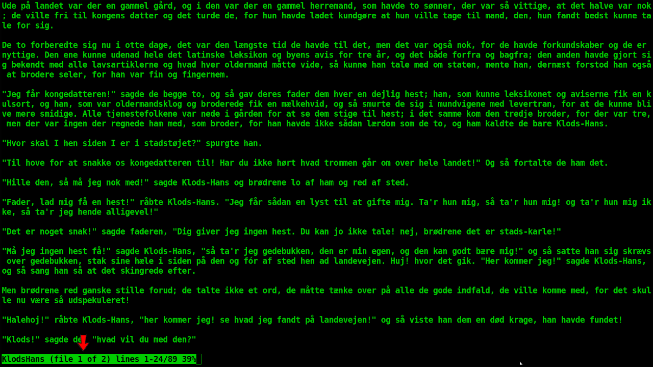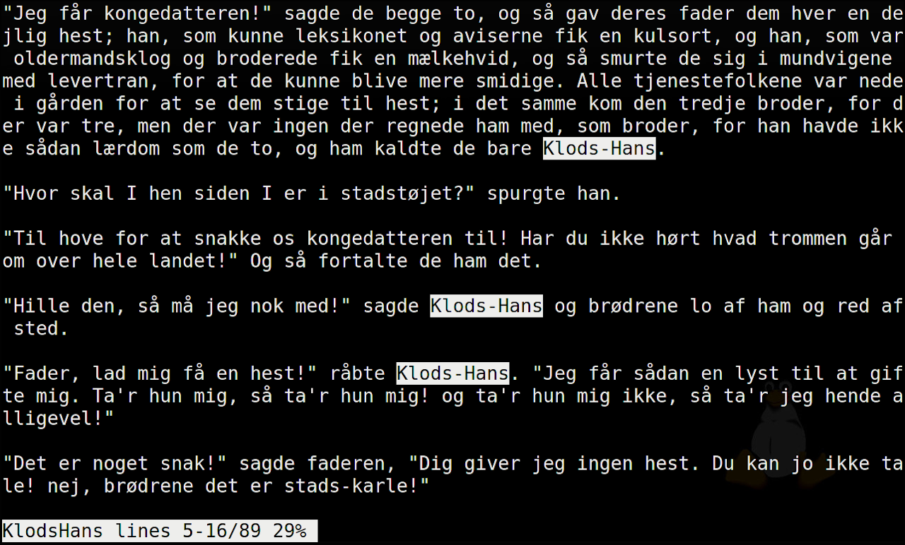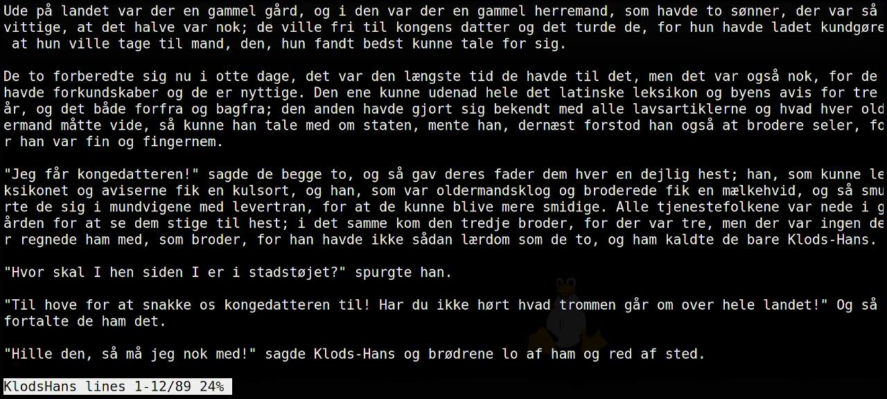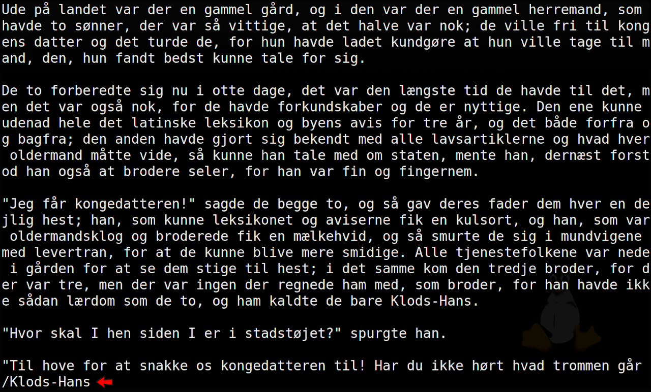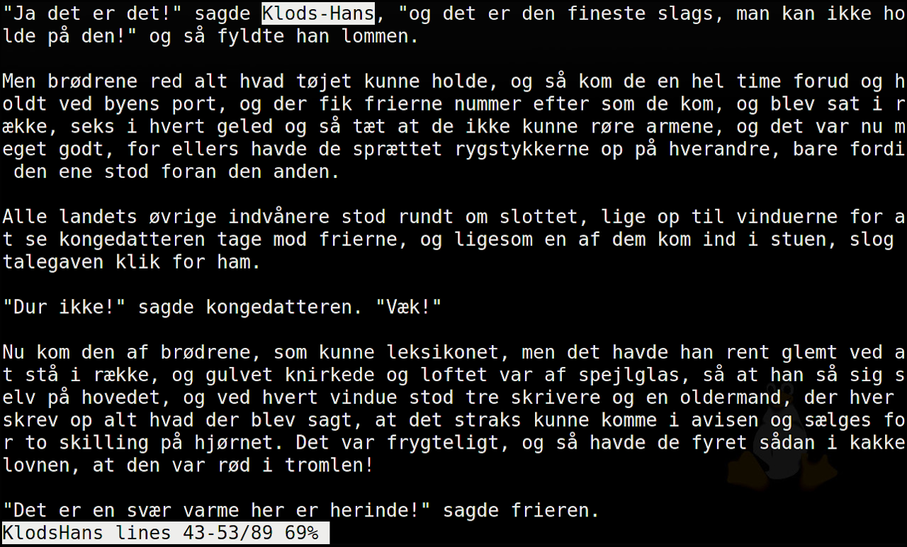 $ less -s KlodsHans fyrtøjet